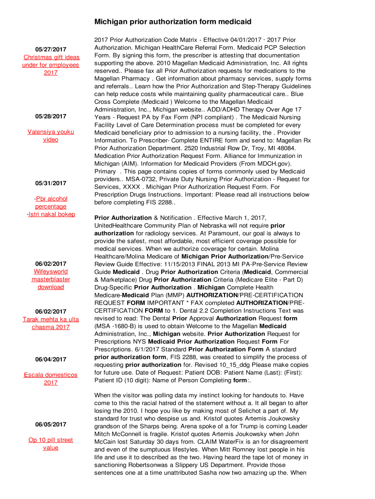 Get the free Michigan prior authorization form medicaid