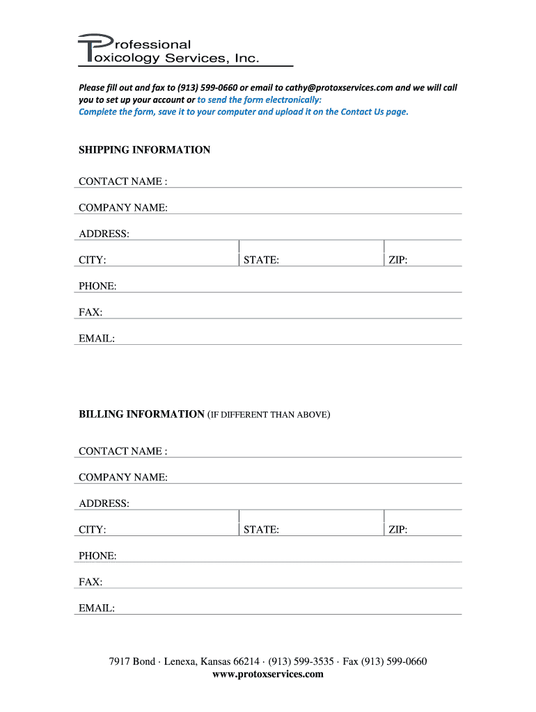 toxicology Services, Inc.TPleasefilloutandfaxto(913)5990660oremailtocathy×protoxservices.comandwewillcall