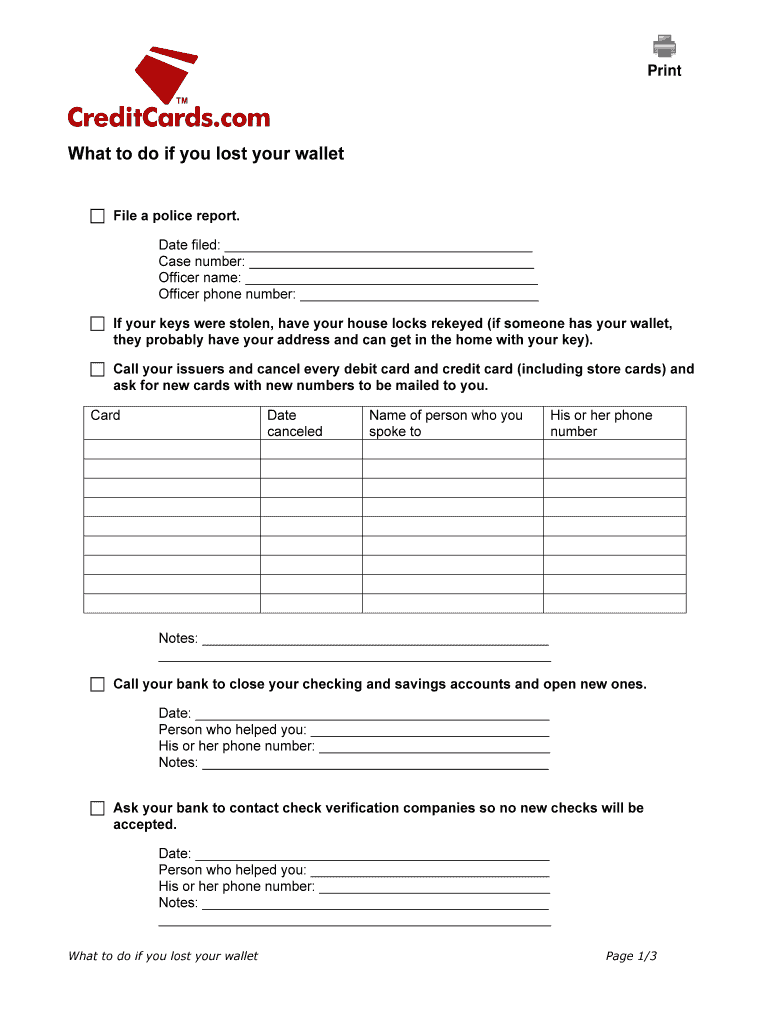 Anyone who has lost their wallet and wants to safeguard their identity and personal information should complete this form, including those looking to notify banks and insurance companies.