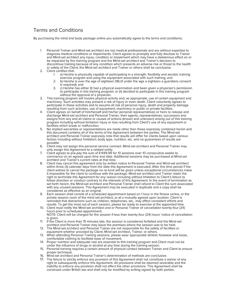 By purchasing the mind and body package online you automatically agree to the terms and conditions;1.2.3.4.5.6.
