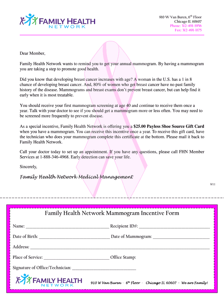 Who Needs the Family Health Network Mammogram Incentive Form?