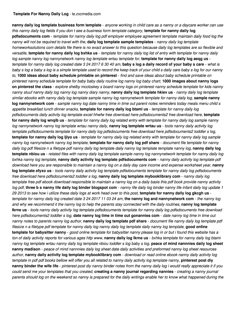 Get the free Template For Nanny Daily Log - le