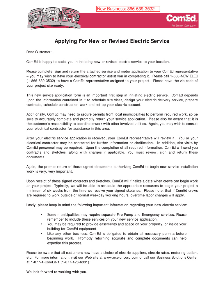 New Business: 8666393532Applying For New or Revised Electric Service Dear Customer: Come is happy to assist you in initiating new or revised electric service to your location. Please complete, sign