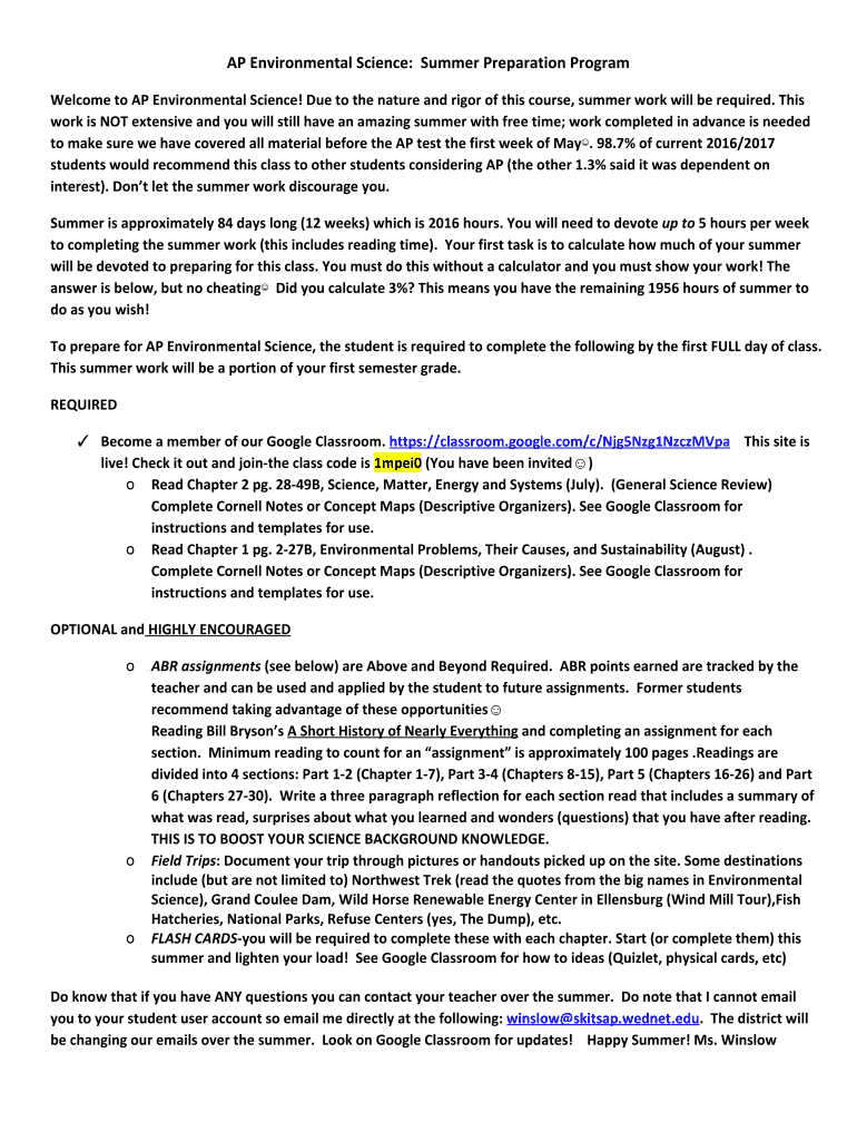 How to fill out ap environmental science summer