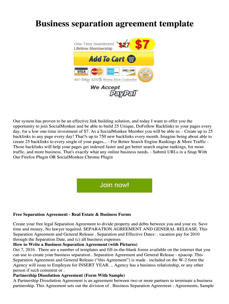 Business separation agreement template system has proven to be an effective link building solution, and today I want to offer you the opportunity to join SocialMonkee and be able to build 25 Unique,