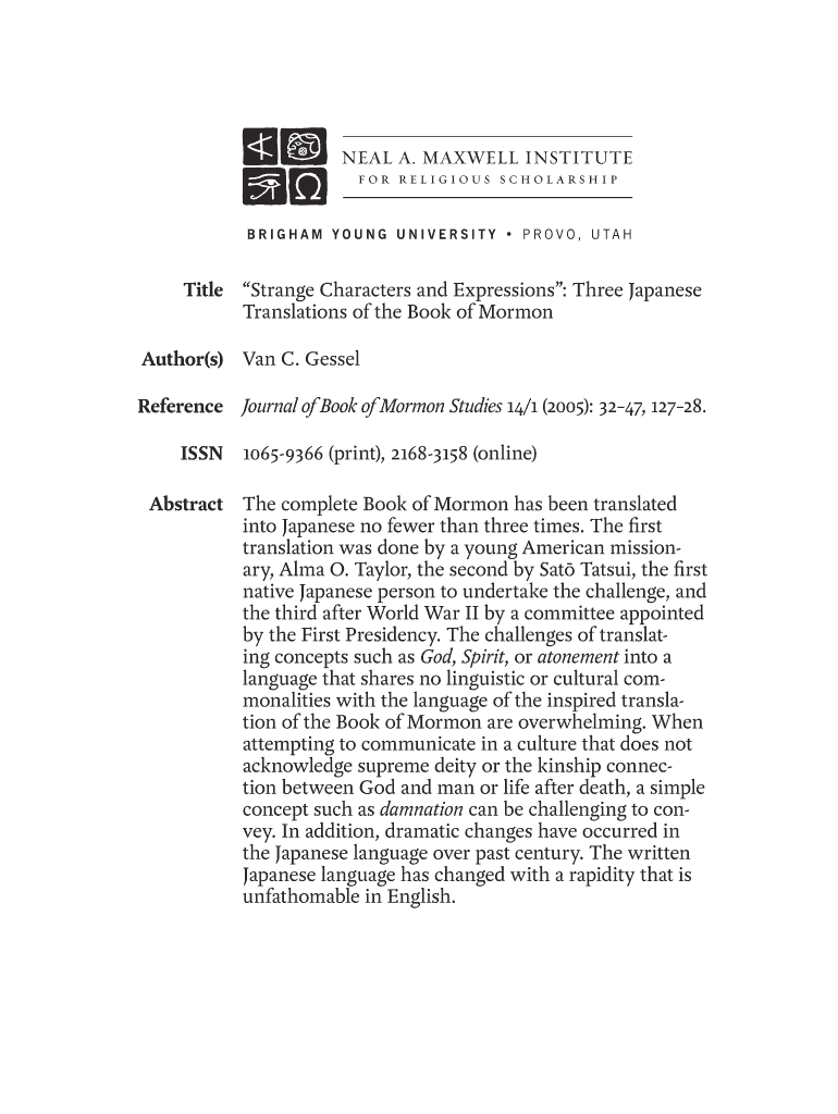 Reference Journal of Book of Mormon Studies 14/1 (2005): 3247, 12728.