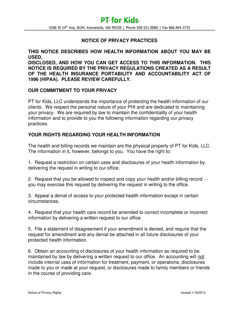 Get the free Notice of privacy practices this notice describes how bb - KidSPOT - mykidspot