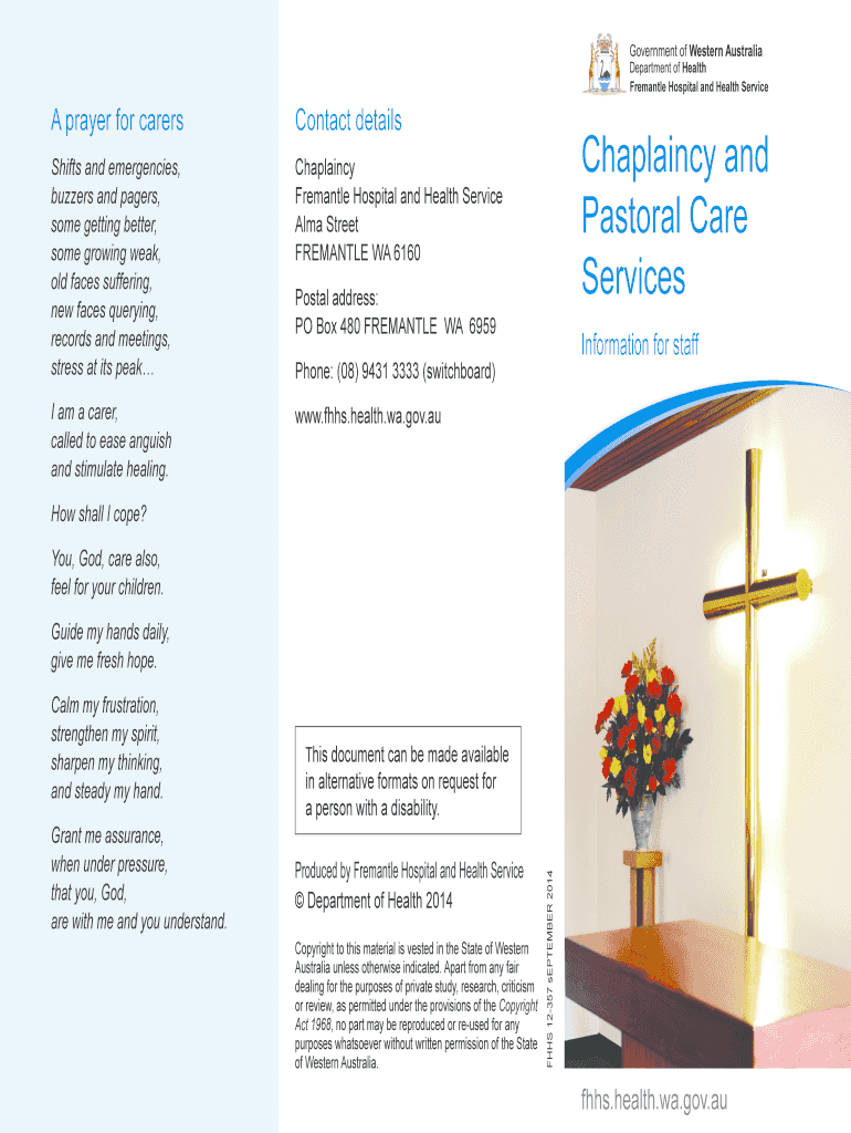 Fremantle Hospital and Health Service prayer for carersContact detailsShifts and emergencies,