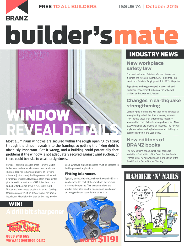 FREE TO ALL BUILDERSISSUE 74 October 2015INDUSTRY NEWS New workplace safety law The new Health and Safety at Work Act is now law. It comes into force on 4 April 2016 until then, the Health and Safety