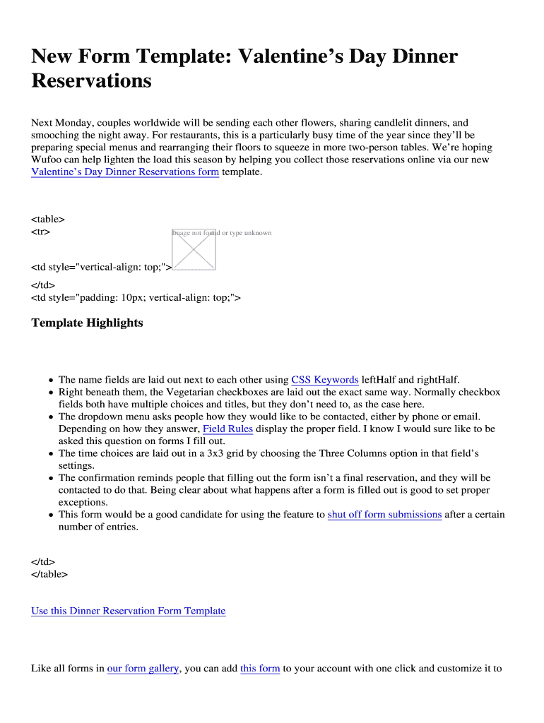 New Form Template: Valentine's Day Dinner
