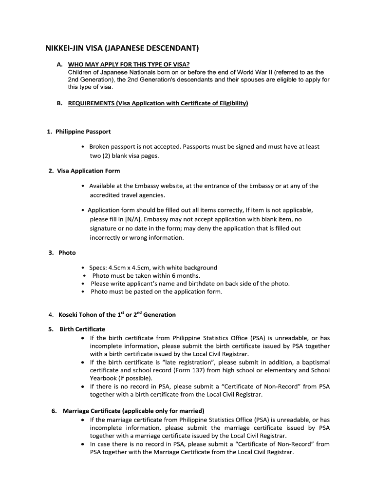 NIKKEI VISA (JAPANESE DESCENDANT) A. WHO MAY APPLY FOR THIS TYPE OF VISA? Children of Japanese Nationals born on or before the end of World War II (referred to as the 2nd Generation), the 2nd Generation's