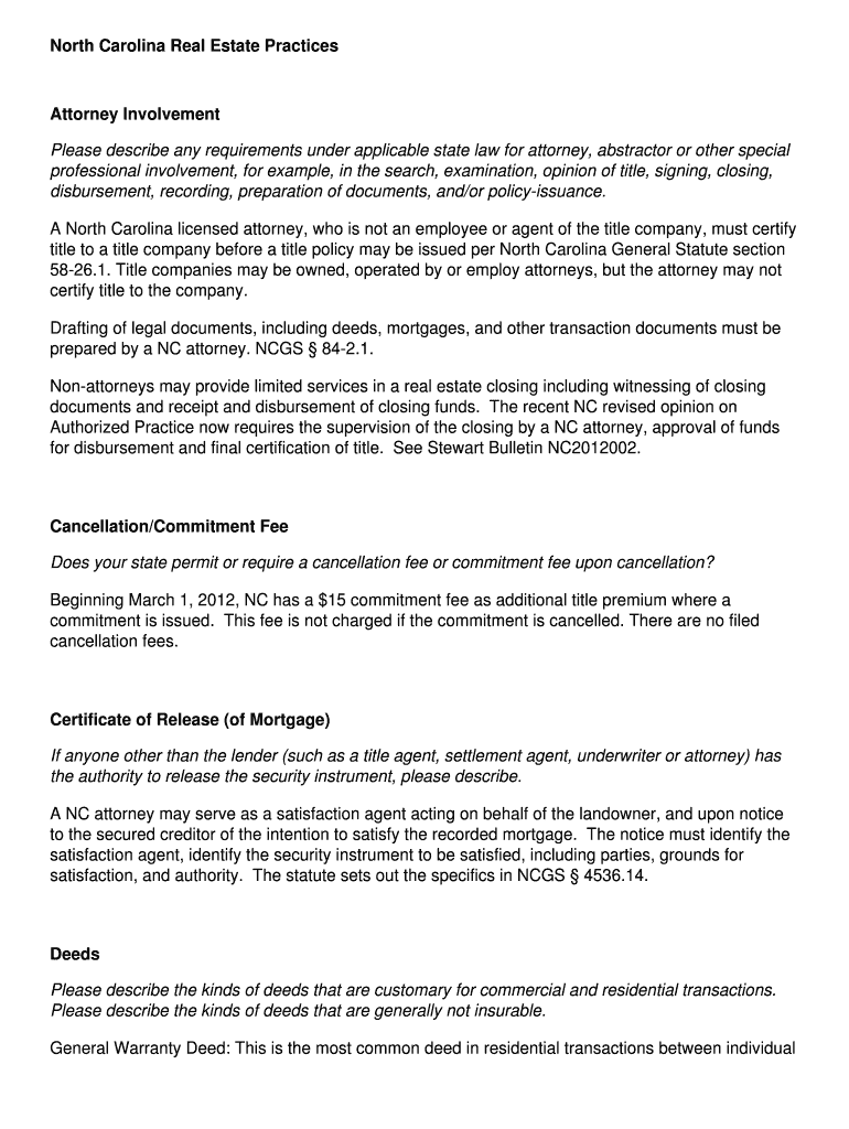 Get the free North Carolina Real Estate Practices