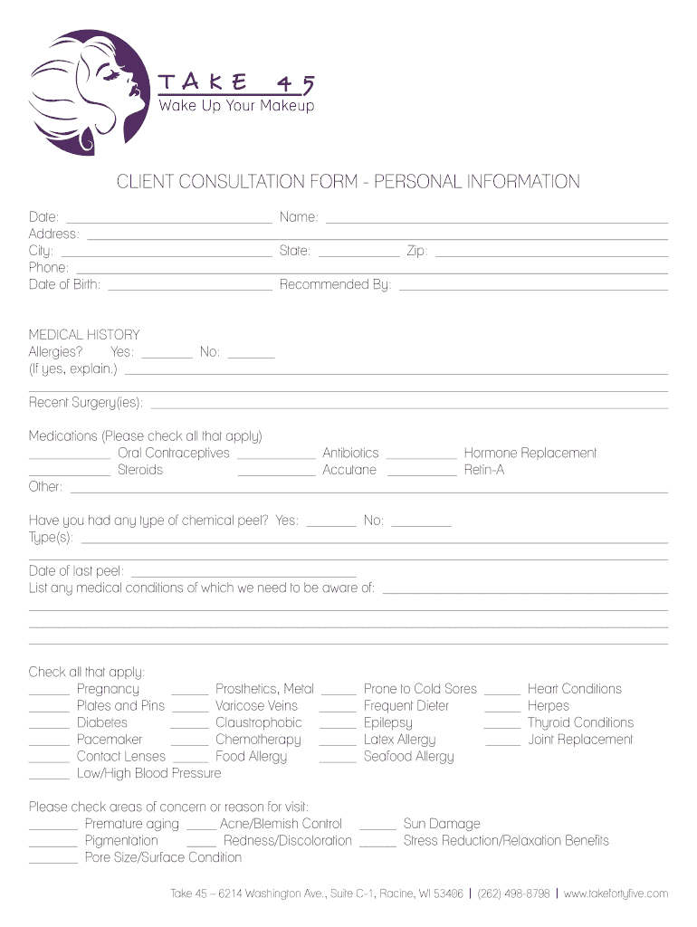 Get the free CLIENT CONSULTATION FORM - PERSONAL INFORMATION