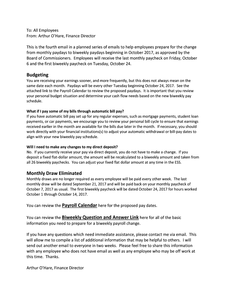 from monthly paydays to biweekly paydays beginning