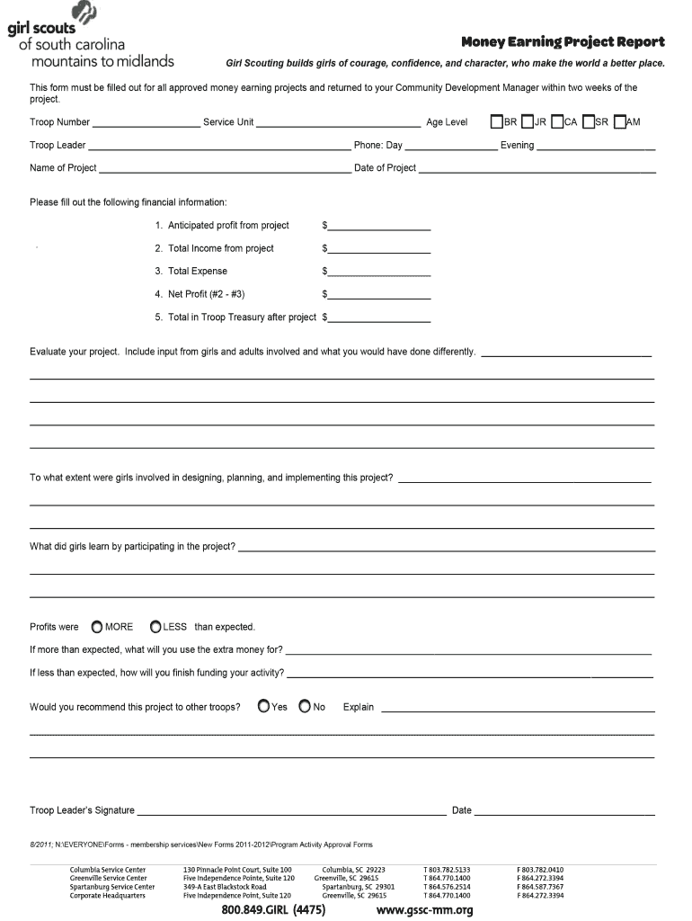 Filling Out the Girl Scouts Money Earning Project Report: Step-by-Step