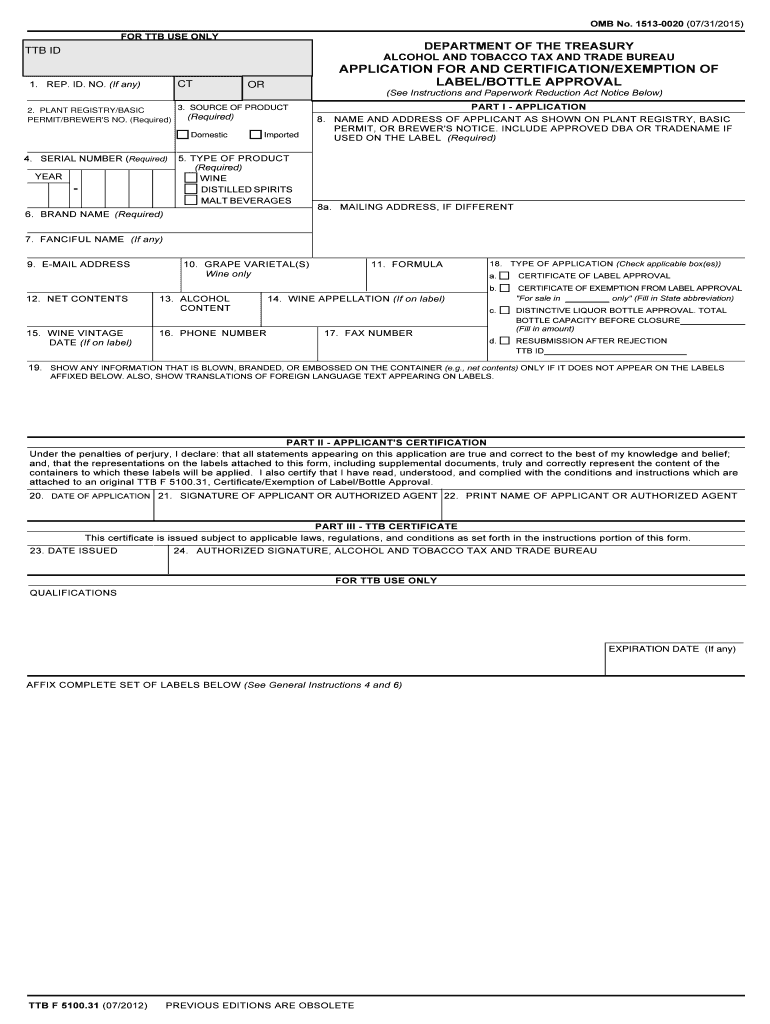 How to fill out the ttb labelbottle approval application