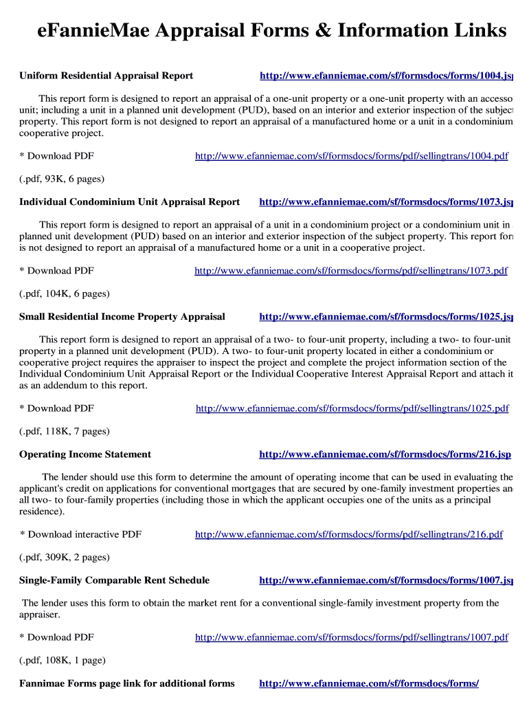 Get the free Fannie Mae Appraisal Forms