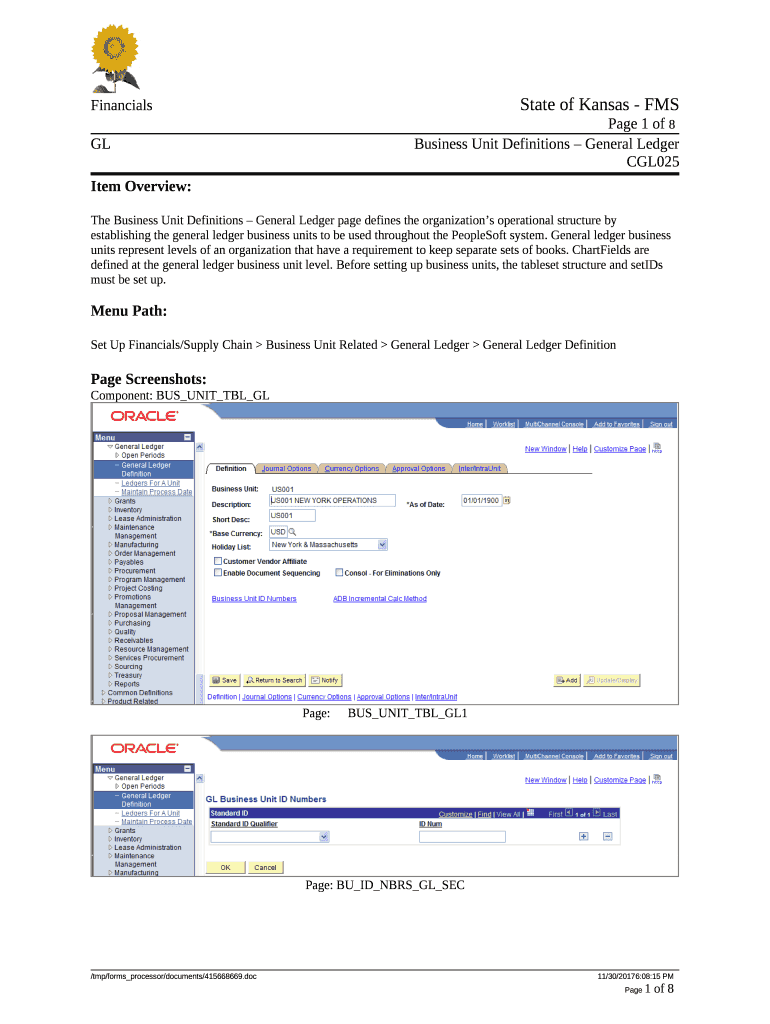 Get the free The Business Unit Definitions General Ledger page defines the organizations operatio...