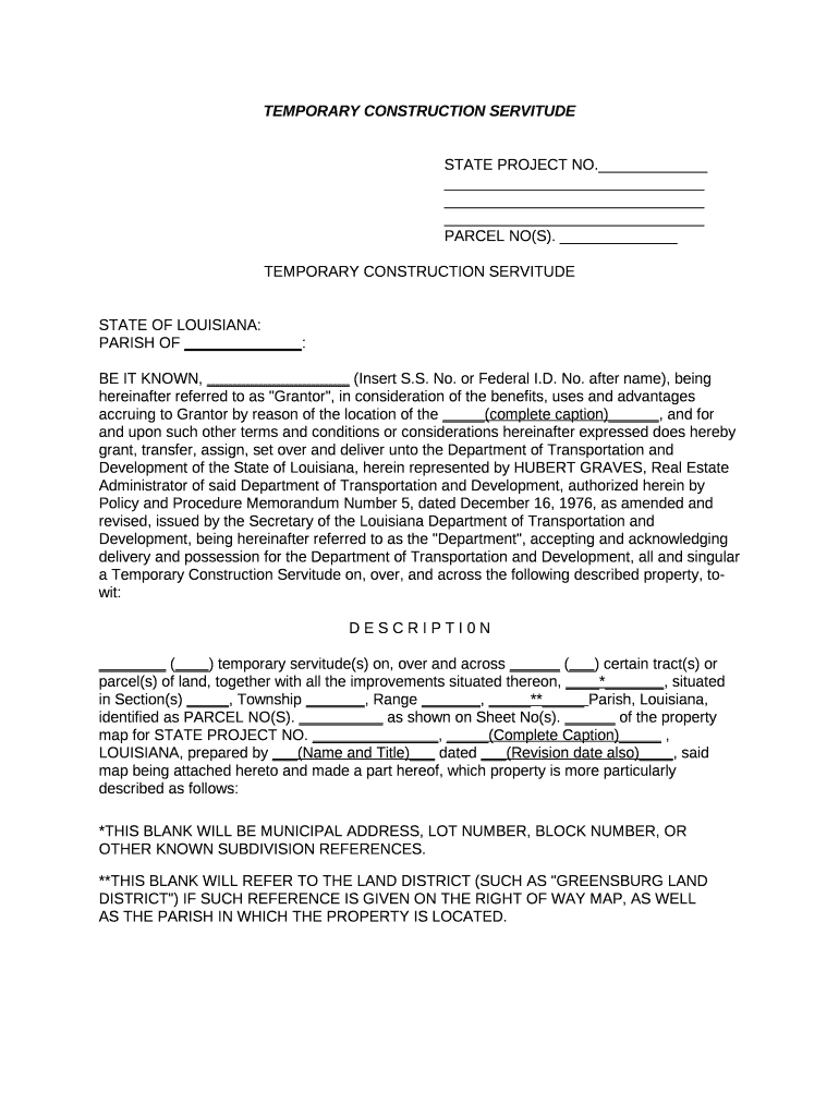 Get the free TEMPORARY CONSTRUCTION SERVITUDE template