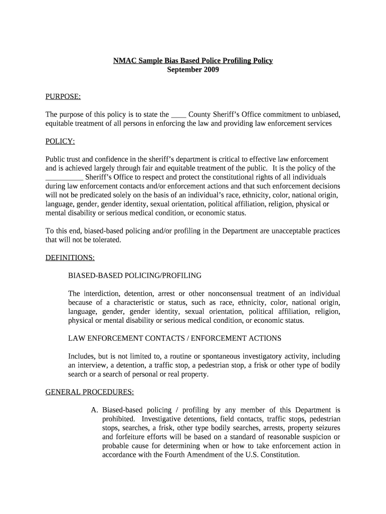 Get the free NMAC Sample Bias Based Police Profiling Policy template