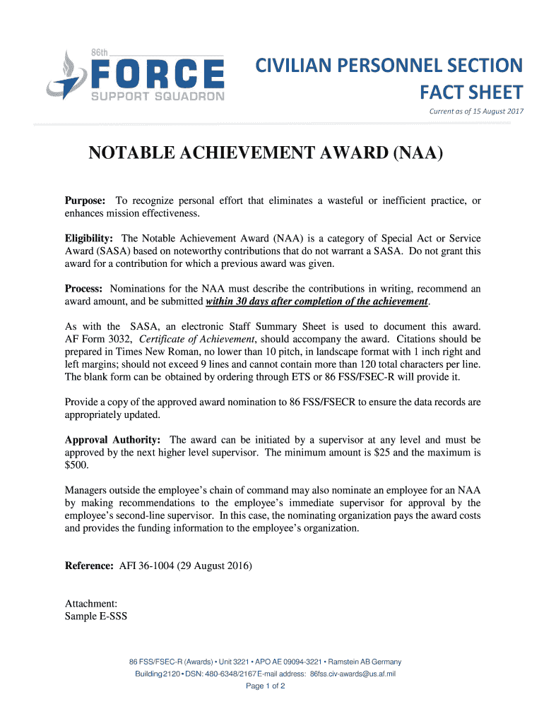 Get the free NOTABLE ACHIEVEMENT AWARD (NAA)