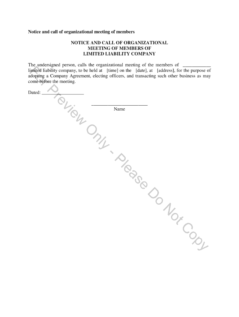 Notice and call of organizational meeting of members NOTICE AND CALL OF ORGANIZATIONAL MEETING OF MEMBERS OF LIMITED LIABILITY COMPANYrPFoThe undersigned person, calls the organizational meeting of