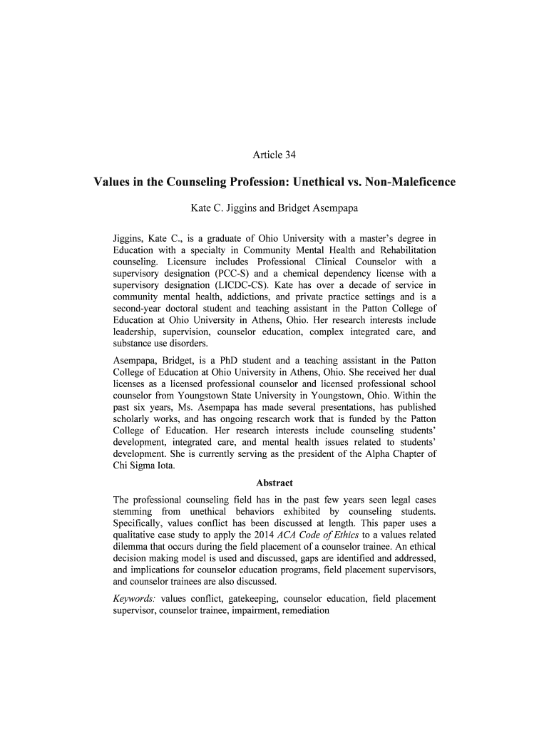 Article 34Values in the Counseling Profession: Unethical vs. Maleficence
