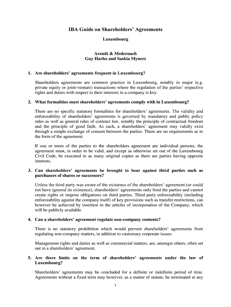 IBA Guide on Shareholders Agreements Luxembourg Arndt & Metternich Guy Charles and Saskia Miners 1. Are shareholders agreements frequent in Luxembourg? Shareholders agreements are common practice