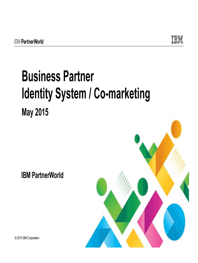 Business Partner Identity System / Comarketing May 2015IBM PartnerWorld 2015 IBM CorporationBusiness Partner Identity SystemAgendaIBM Business Partner (BP) Mark value Use of IBM 8bar logoOverview