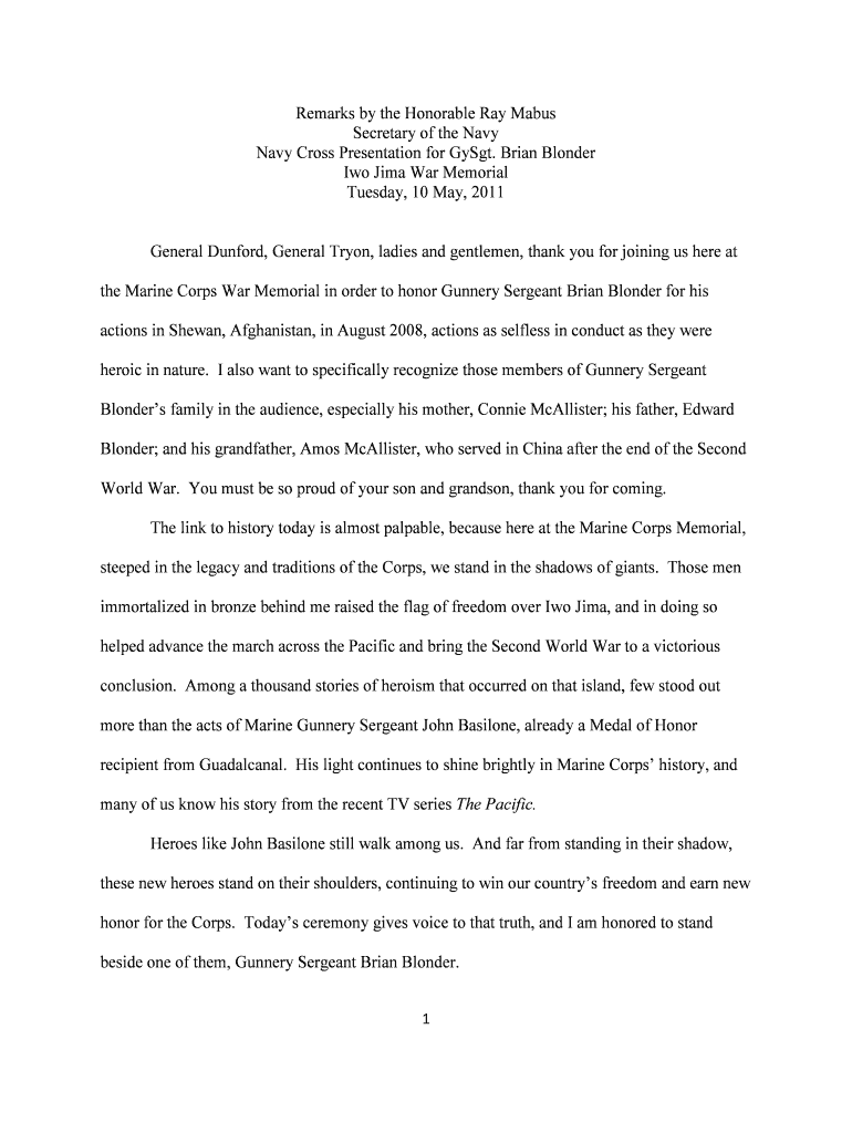Get the free Navy Cross Presentation for GySgt