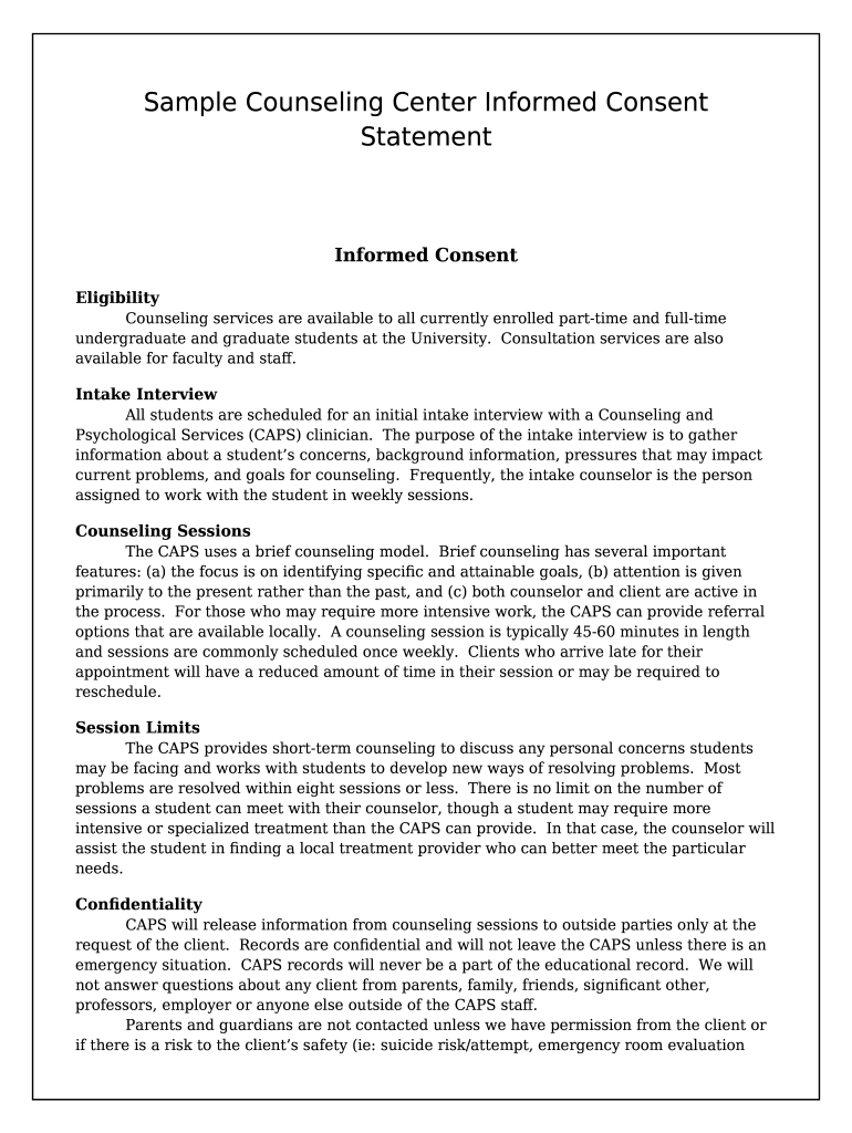 Get the free Sample Counseling Center Ined Consent Statement template