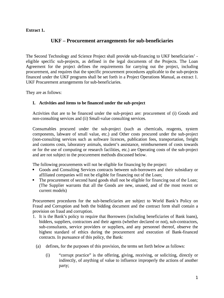 Extract 1. UK Procurement arrangements for subbeneficiariesThe Second Technology and Science Project shall provide subfinancing to UK beneficiaries eligible specific subprojects, as defined in the