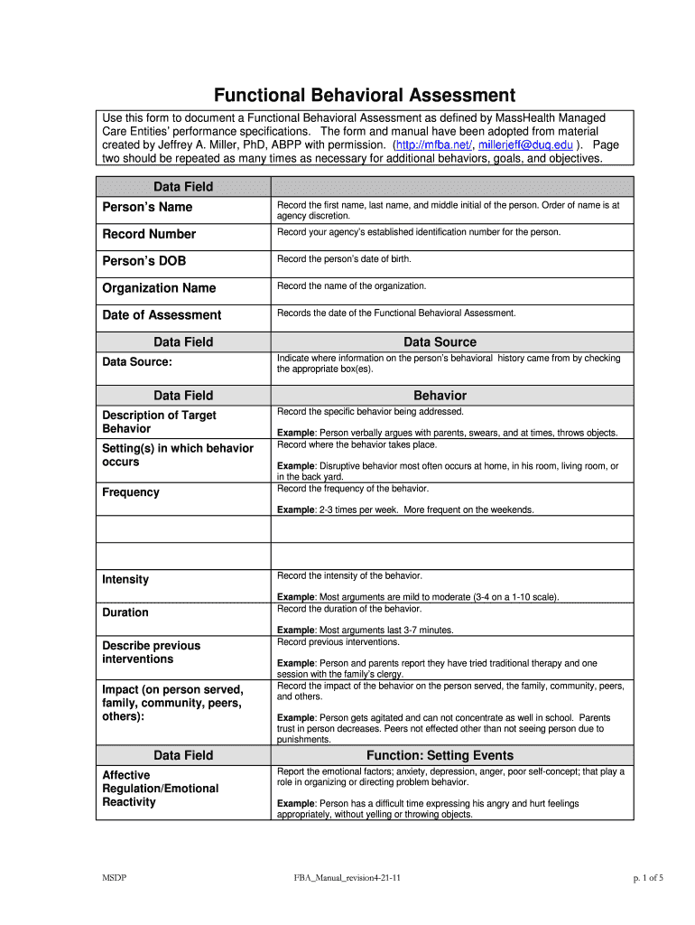 Get the free Use this form to document a Functional Behavioral Assessment as defined by MassHealt...