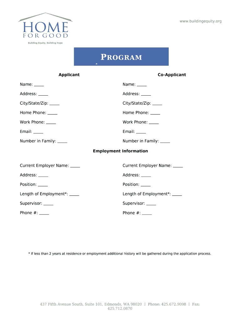 ApplicantName: Address: City/State/Zip: Home Phone: Work Phone: Email: Number in Family: CoApplicantName: Address: City/State/Zip: Home Phone: Work Phone: Email: Number in Family: Employment InformationCurrent