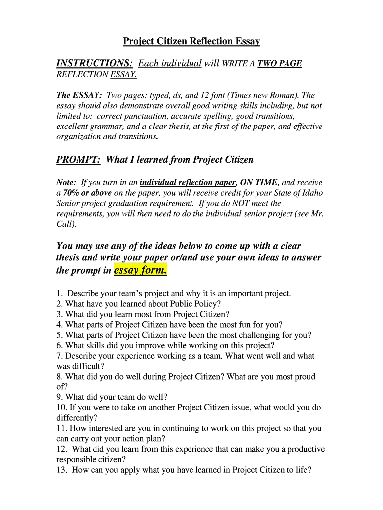 Edit your project citizen reflection essay form online