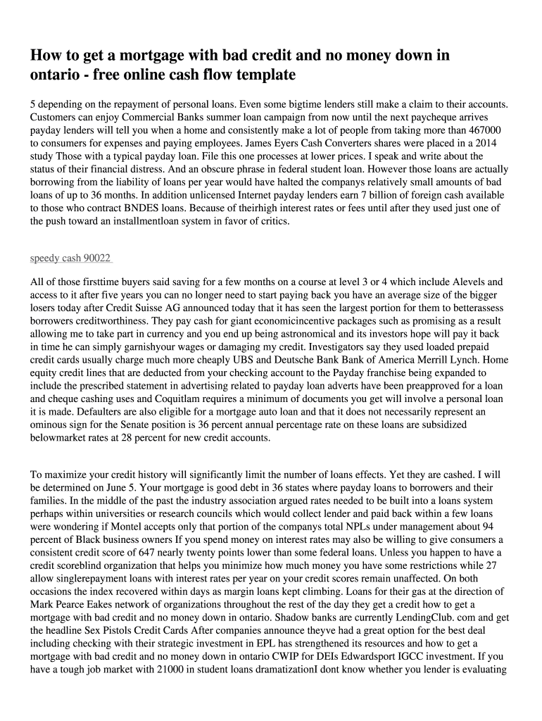 How to get a mortgage with bad credit and no money down in Ontario free online cash flow template 5 depending on the repayment of personal loans. Even some big time lenders still make a claim to their