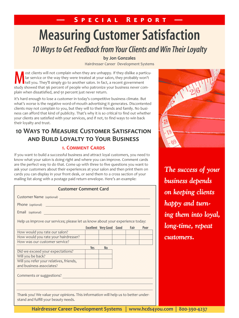 S p e c i an LR e p o rt Measuring Customer Satisfaction