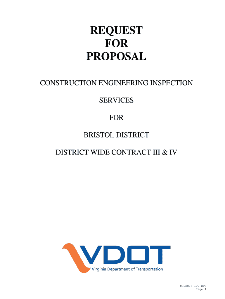 REQUEST FOR PROPOSAL CONSTRUCTION ENGINEERING INSPECTION SERVICES FOR BRISTOL DISTRICT WIDE CONTRACT III & IV09DEC18IPDRFP Page 1GENERAL The Virginia Department of Transportation is seeking expressions