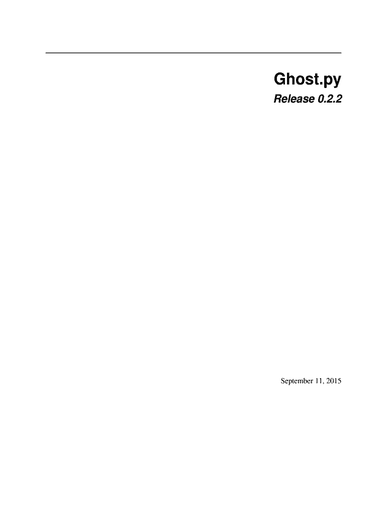Ghost.py Release 0.2.2September 11, 2015Contents1Installation32API 2.1 Ghost. . . . . . . . . . . . . . . . . . . . . . . . . . . . . . . . . . . . . . . . . . . . . . . . . . . 2.2 Session. . . .