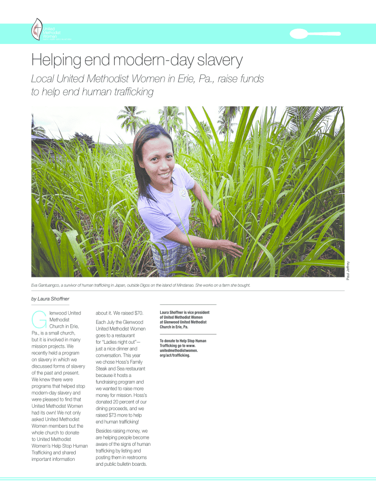 Helping end modern day slavery Paul JeffreyLocal United Methodist Women in Erie, Pa., raise funds