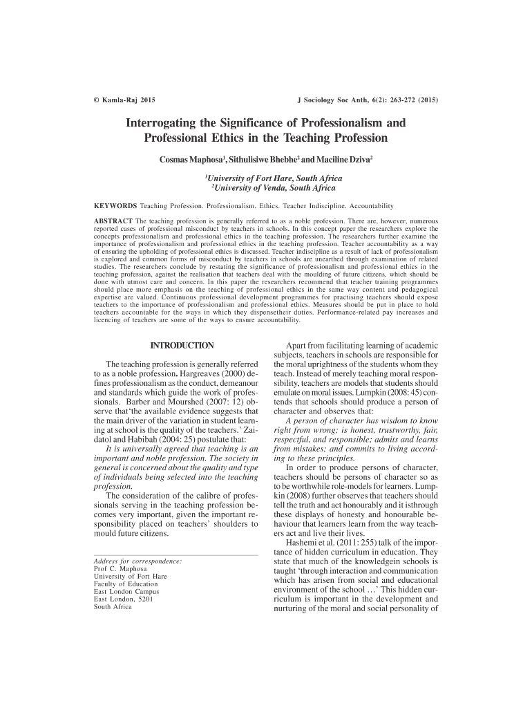 Kampala 2015J Sociology Soc Anti, 6(2): 263272 (2015)Interrogating the Significance of Professionalism and