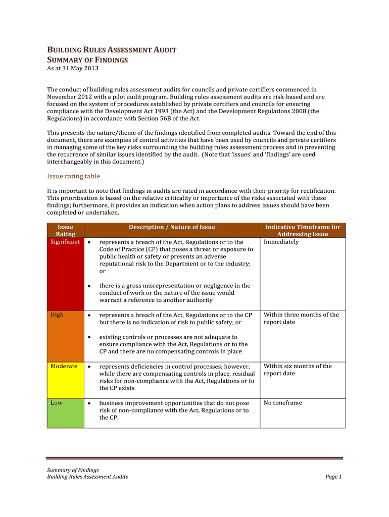 Get the free BUILDING RULES ASSESSMENT AUDIT
