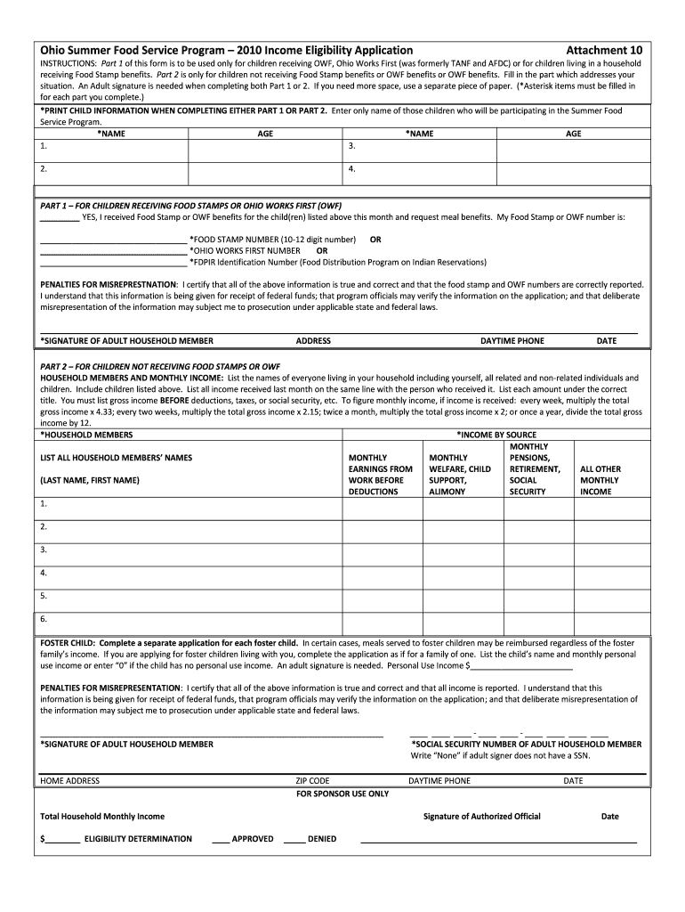 Who Needs the Ohio Summer Food Service Program Income Eligibility Application?