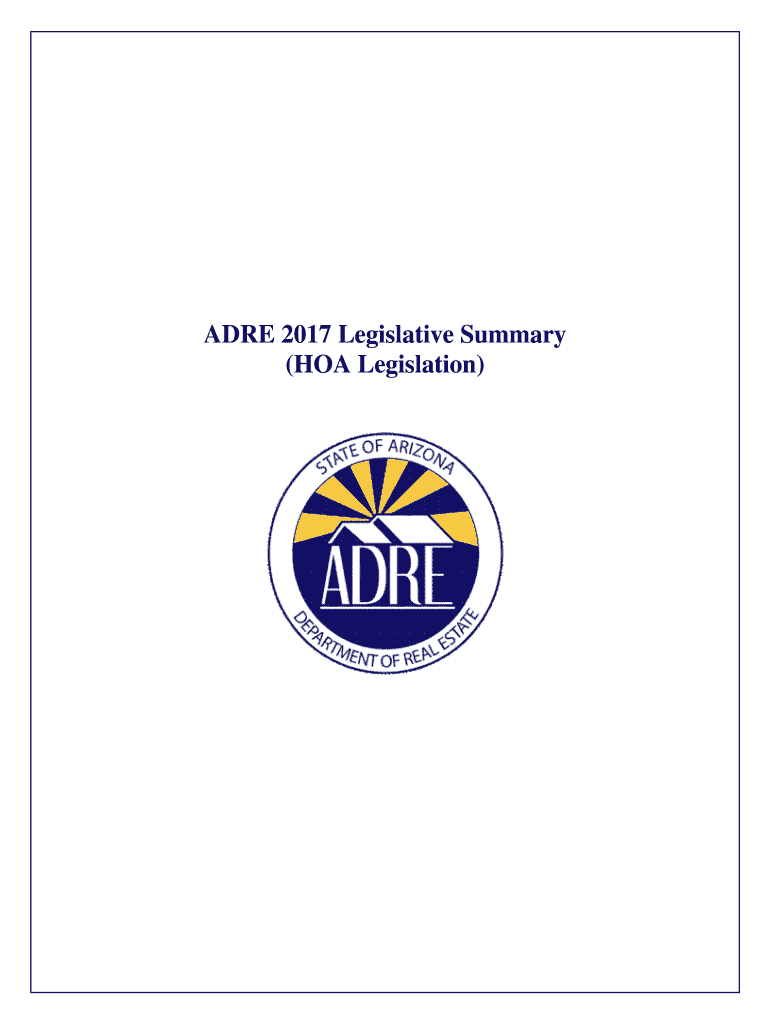 ARE 2017 Legislative Summary (HOA Legislation)ARE Legislative Overview 2016 The Arizona State Legislature adjourned sine die on May 10, 2017, at 7:00pm. The following bills were passed and signed