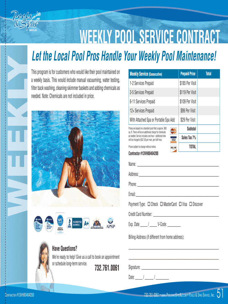 Fill out your weekly pool service contract online with pdfFiller!