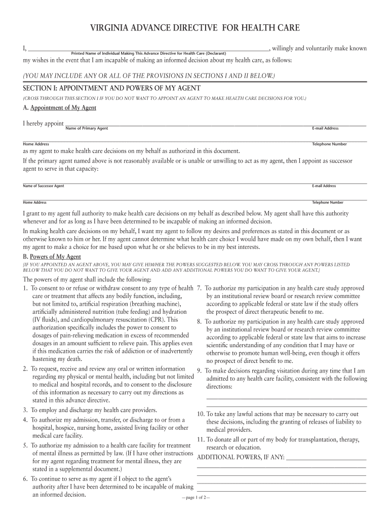 The primary purpose of creating a Virginia Advance Directive is to ensure that your health care preferences are known and respected. Some of the key benefits of having this document include: