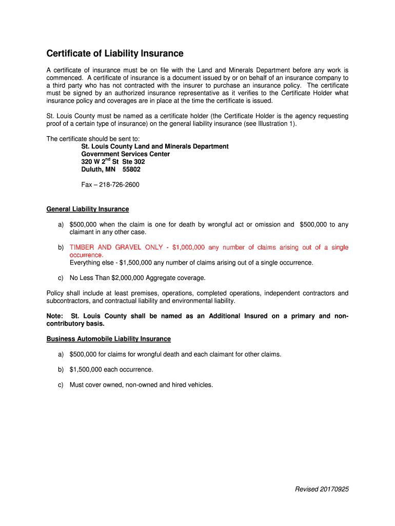 A certificate of insurance must be on file with the Land and Minerals Department before any work is