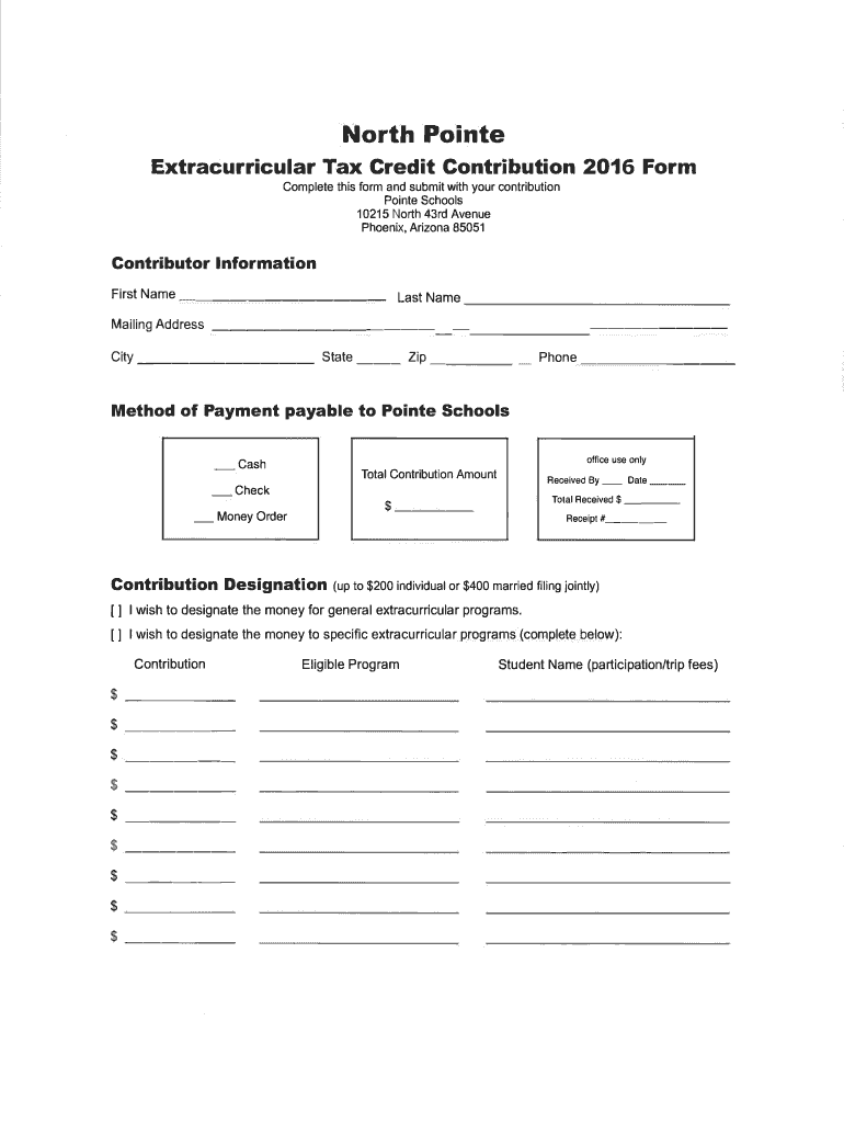 North Point Extracurricular Tax Credit Contribution 2016 Form Complete this form and submit with your contribution Point Schools 10215 North 43rd Avenue Phoenix, Arizona 85051Contributor Information