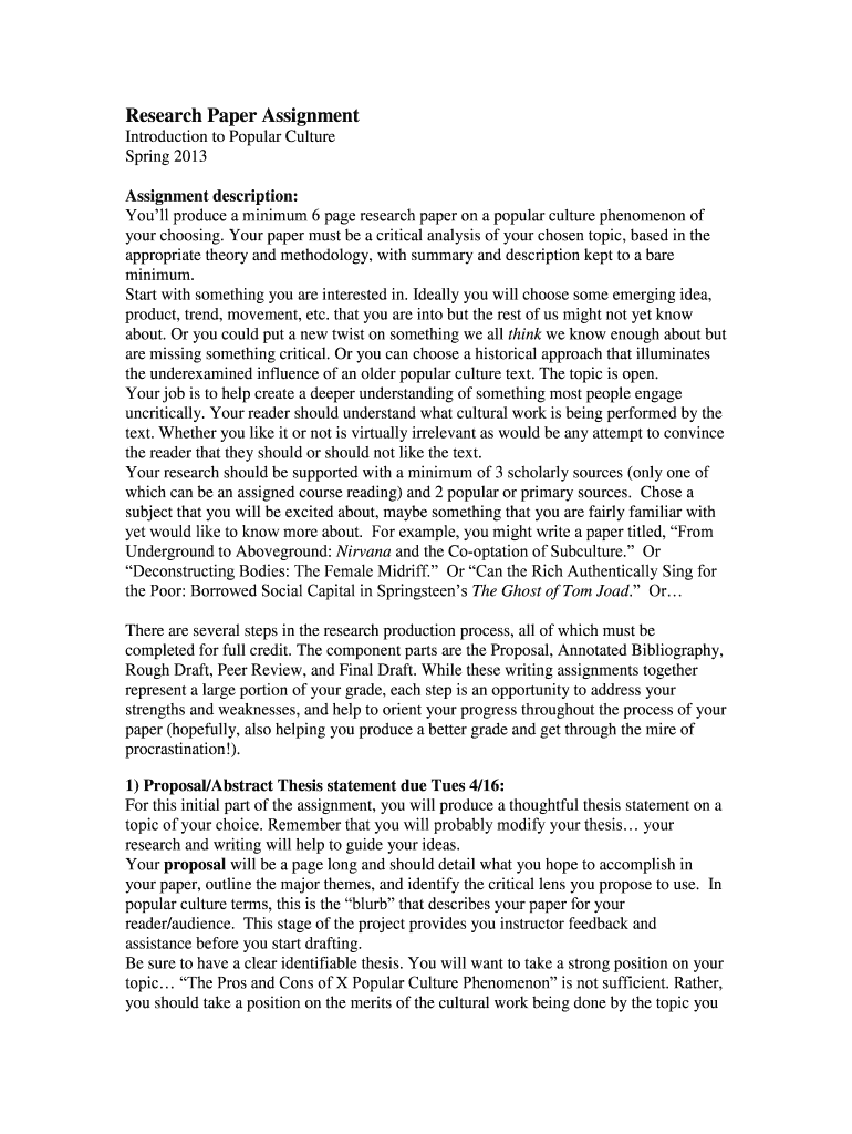 You'll produce a minimum 6-page research paper on a popular culture phenomenon of