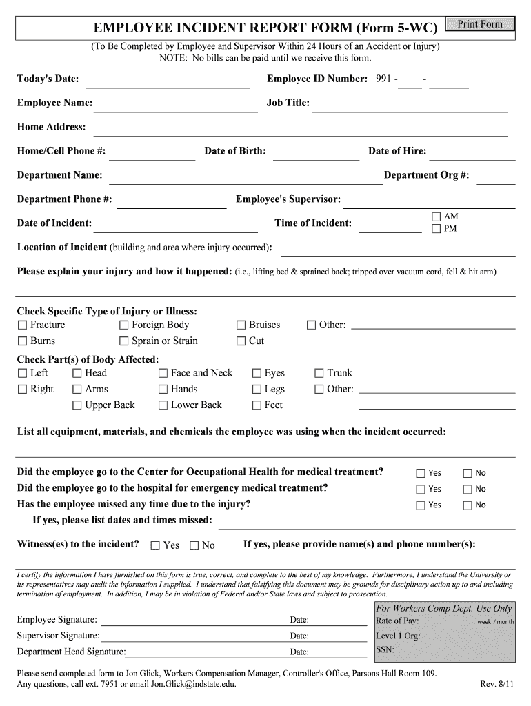 Print FormEMPLOYEE INCIDENT REPORT FORM (Form 5WC)